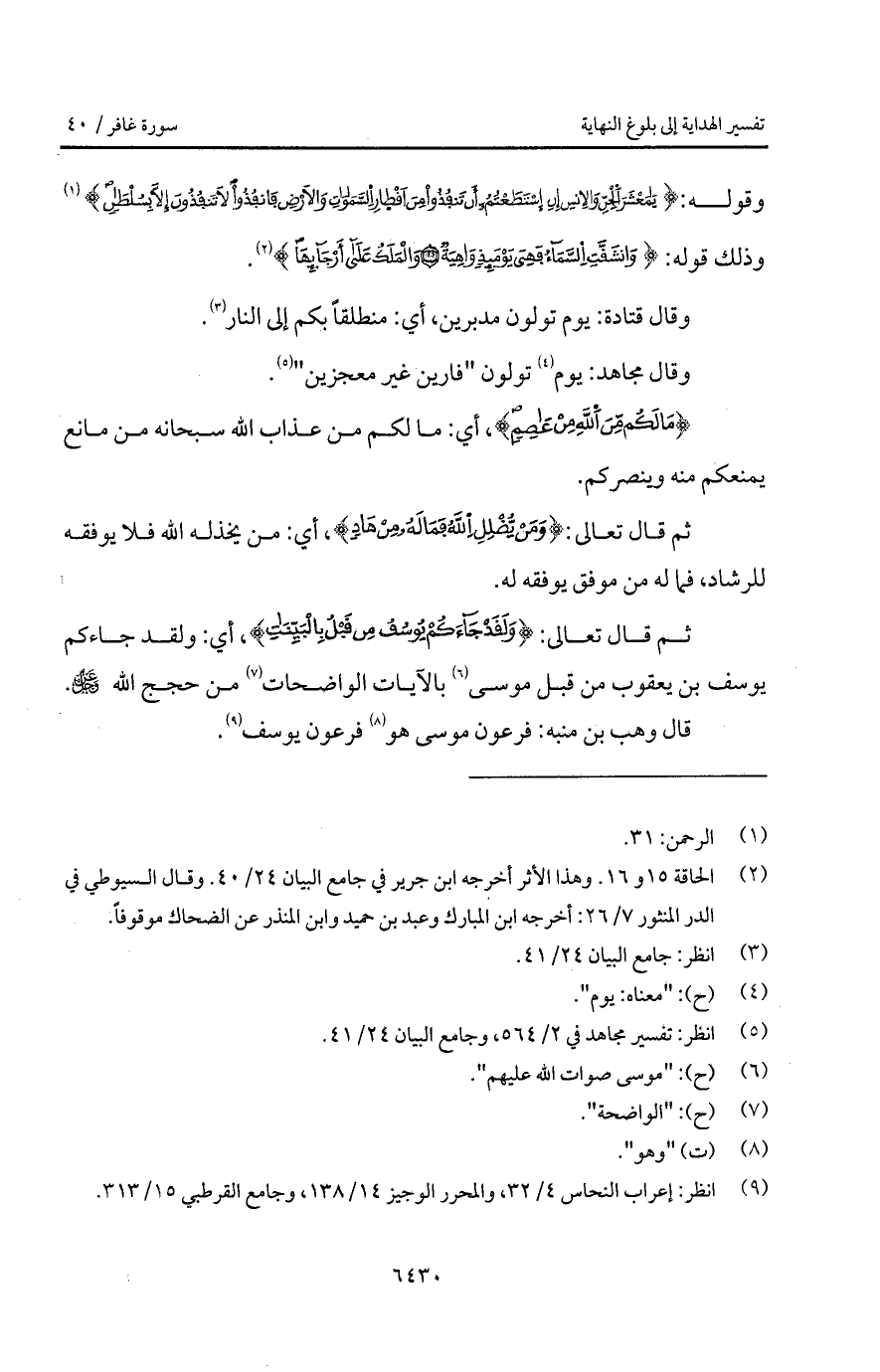 وقال قتادة: يوم تولون مدبرين، أي: منطلقاً بكم إلى النار.