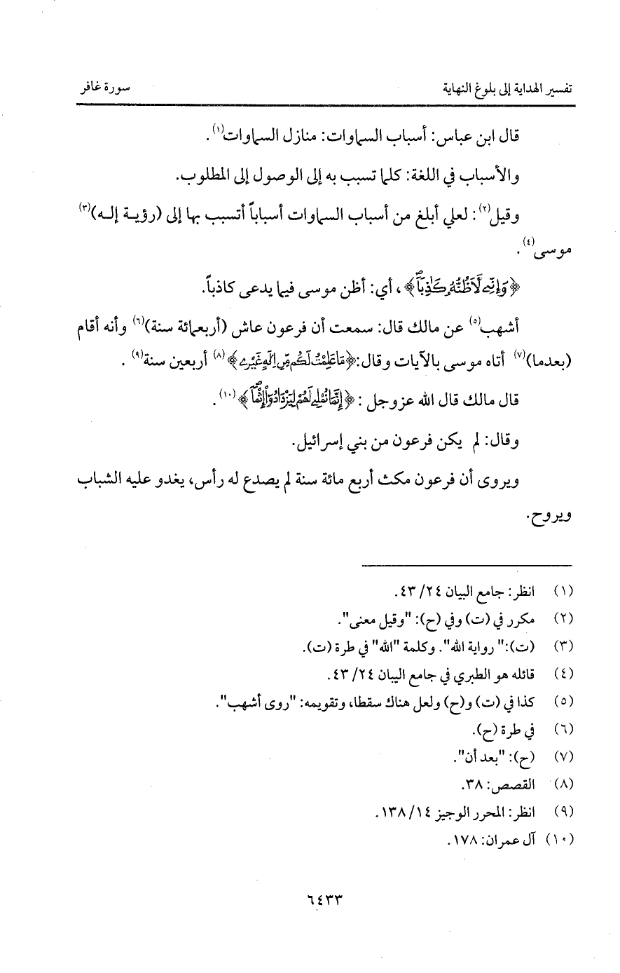 أشهب عن مالك قال: سمعت أن فرعون عاش (أربعمائة سنة) وأنه أقام (بعدما) أتاه موسى بالآيات وقال: {مَا عَلِمْتُ لَكُمْ مِّنْ إله غَيْرِي} [القصص: 38] أربعين سنة.