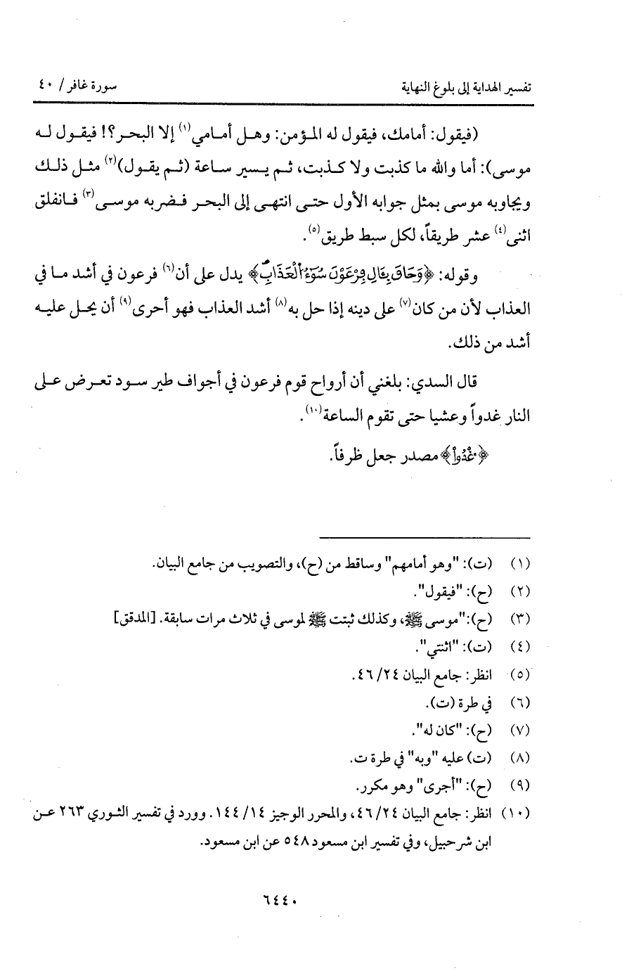 (فيقول: أمامك، فيقول له المؤمن: وهل أمامي إلا البحر؟! فيقول له موسى): أما والله ما كذبت ولا كذبت، ثم يسير ساعة (ثم يقول) مثل ذلك ويجاوبه موسى بمثل جوابه الأول حتى انتهى إلى البحر فضربه موسى فانفلق اثنى عشر طريقاً، لكل سبط طريق.