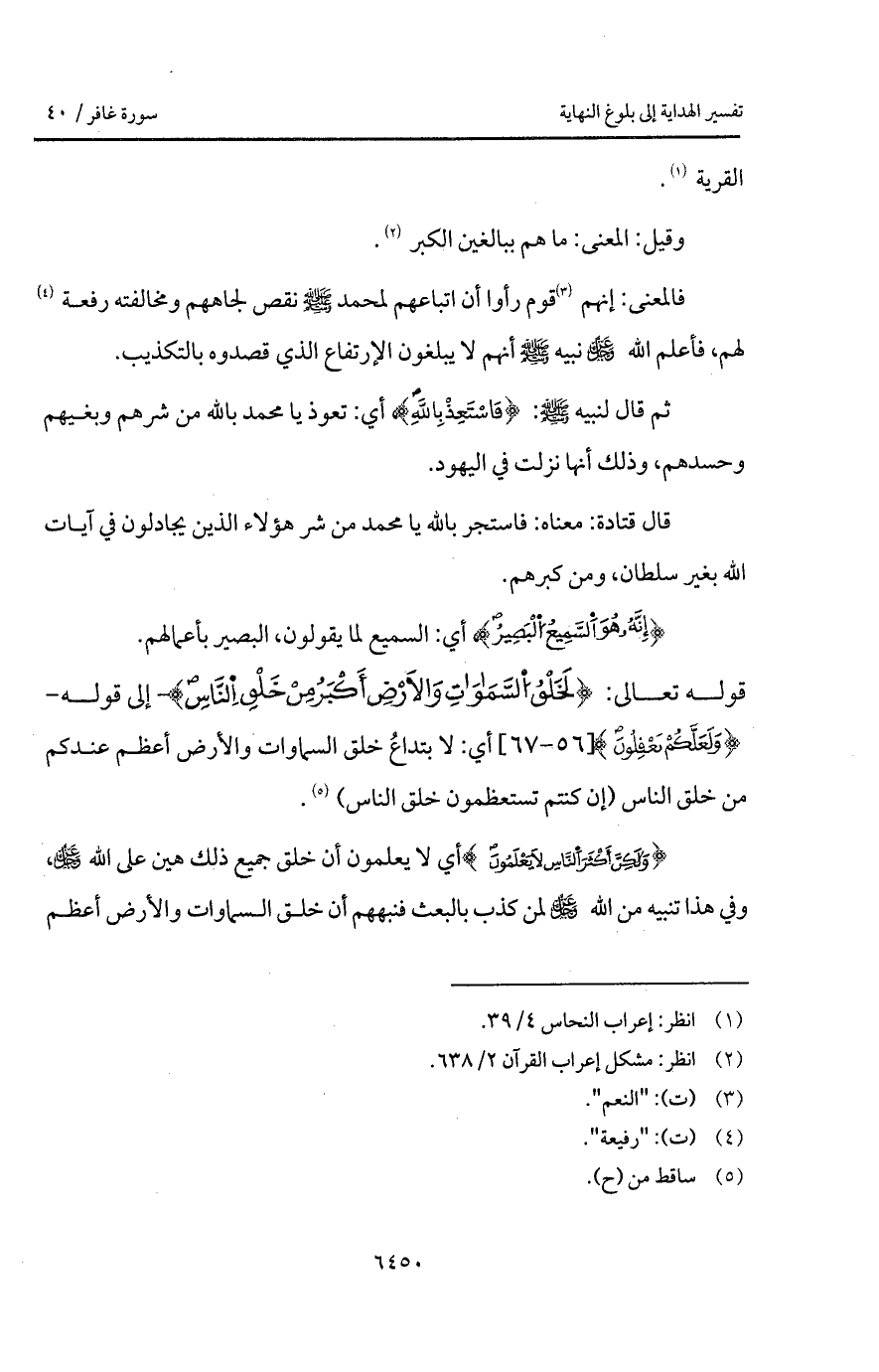 قال قتادة: معناه: فاستجر بالله يا محمد من شر هؤلاء الذين يجادلون في آيات الله بغير سلطان، ومن كبرهم.