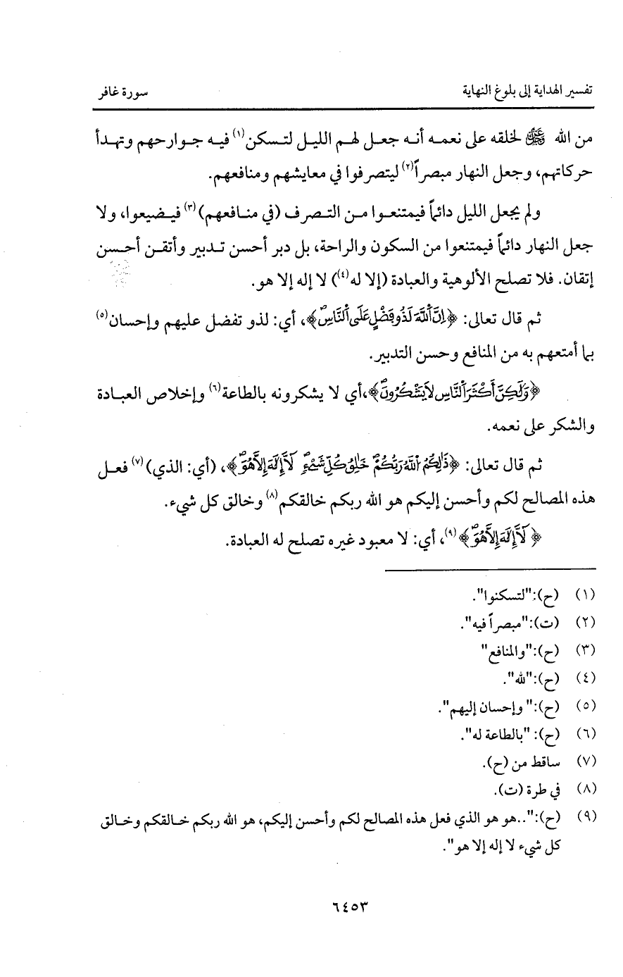 من الله D لخلقه على نعمه أنه جعل لهم الليل لتسكن فيه جوارحهم وتهدأ حركاتهم، وجعل النهار مبصراً ليتصرفوا في معايشهم ومنافعهم.
