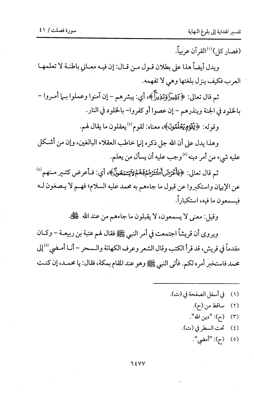 " ويروى أن قريشاً اجتمعت في أمر النبي A فقال لهم عتبة بن ربيعة - وكان مقدماً في قريش، قد قرأ الكتب وقال الشعر وعرف الكهانة والسحر - أنا أمضي إلى محمد فاستخبر أمره لكم. فأتى النبي A وهو عند المقام بمكة، فقال: يا محمد، إن كنت