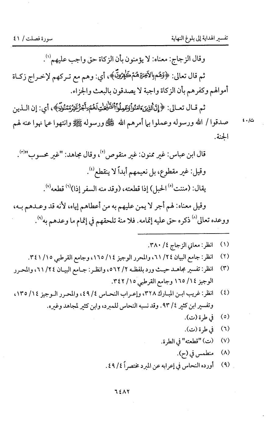 قال ابن عباس: غير ممنون: غير منقوص، وقال مجاهد: " غير محسوب ".