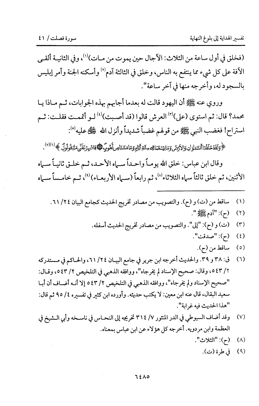 وروي عنه A أن اليهود قالت له بعدما أجابهم بهذه الجوابات، ثم ماذا يا محمد؟ قال: ثم استوى (على) العرش قالوا (قد أصبت) لو أتممت فقلت: ثم استراح! فغضب النبي A من قولهم غضباً شديداً وأنزل الله D عليه: {وَلَقَدْ خَلَقْنَا السماوات والأرض وَمَا بَيْنَهُمَا فِي سِتَّةِ أَيَّامٍ وَمَا مَسَّنَا مِن لُّغُوبٍ * فاصبر على مَا يَقُولُونَ} [ق: 38 - 39].