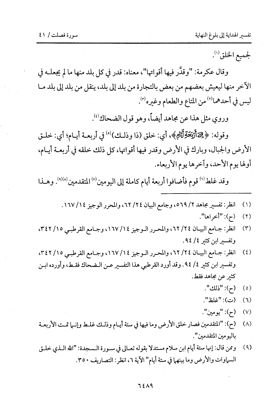 وقوله: {في أَرْبَعَةِ أَيَّامٍ}، أي: خلق (ذا وذلك) في أربعة أيام؛ أي: خلق الأرض والجبال، وبارك في الأرض وقدر فيها أقواتها، كل ذلك خلقه في أربعة أياك، أولها يوم الأحد، وآخرها يوم الأربعاء.