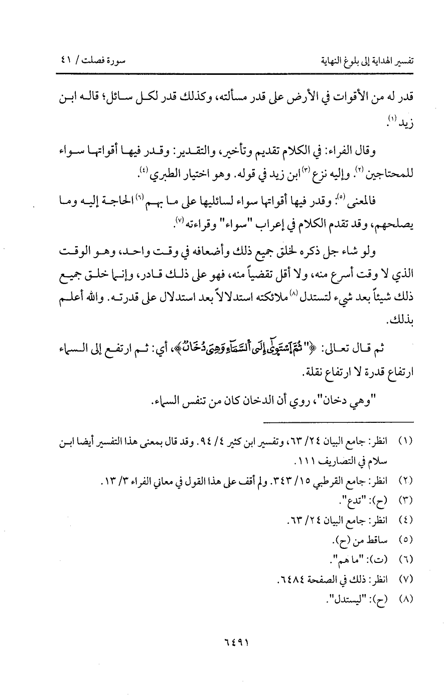 وقال الفراء: في الكلام تقديم وتأخير، والتقدير: وقدر فيها أقواتها سواء للمحتاجين. وإليه نزع ابن زيد في قوله. وهو اختيار الطبري.