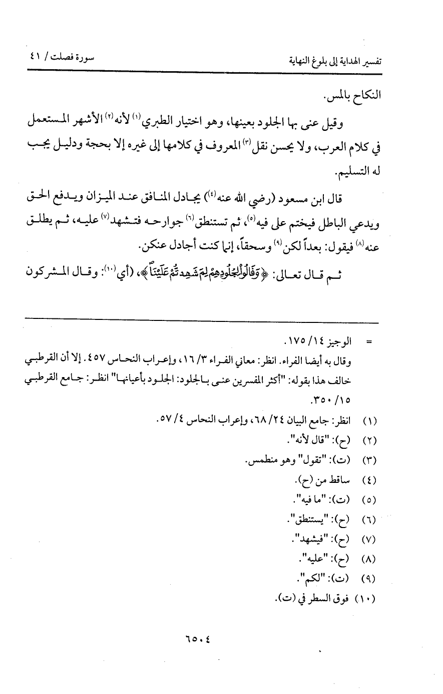 وقيل عنى بها الجلود بعينها، وهو اختيار الطبري لأنه الأشهر المستعمل في كلام العرب، ولا يحسن نقل المعروف في كلامها إلى غيره إلا بحجة ودليل يجب له التسليم.
