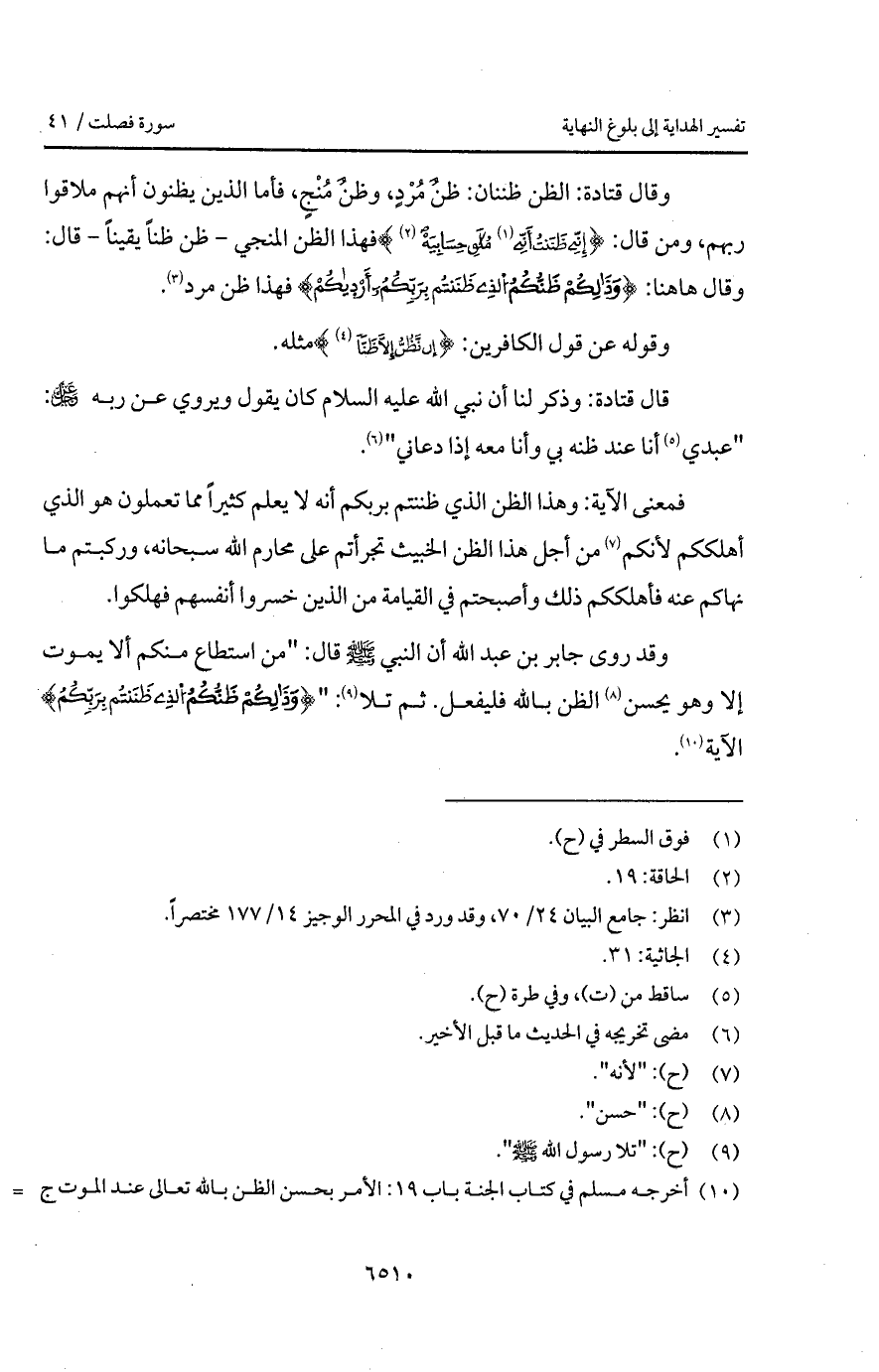وقد روى جابر بن عبد الله أن النبي A قال: " من استطاع منكم ألا يموت إلا وهو يحسن الظن بالله فليفعل. ثم تلا " {وَذَلِكُمْ ظَنُّكُمُ الذي ظَنَنتُم بِرَبِّكُمْ " الآية.