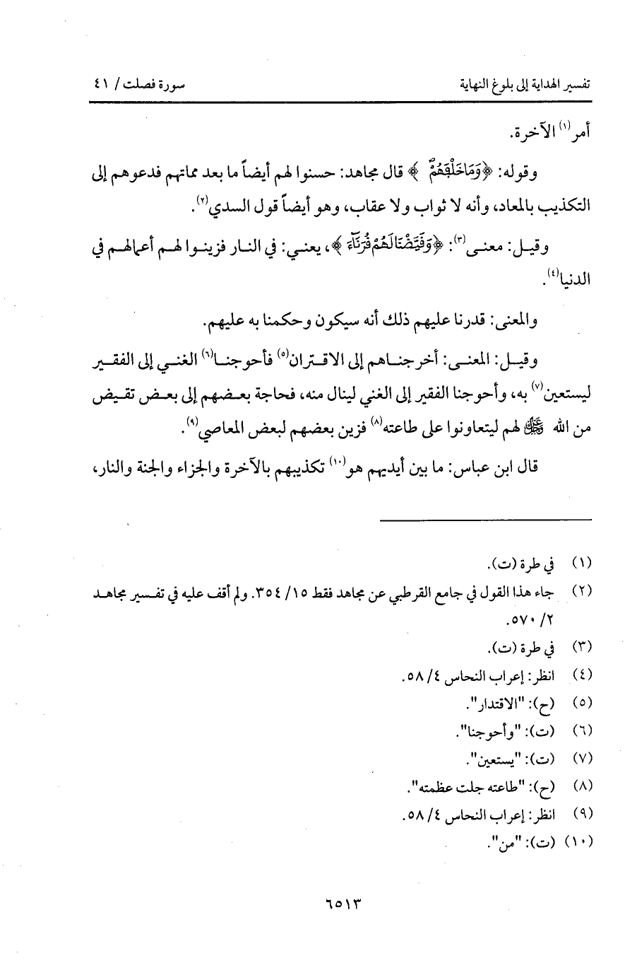 وقيل: المعنى: أخرجناهم إلى الاقتران فأحوجنا الغني إلى الفقير ليستعين به، وأحوجنا الفقير إلى الغني لينال منه، فحاجة بعضهم إلى بعض تقيض من الله D لهم ليتعاونوا على طاعته فزين بعضهم لبعض المعاصي.