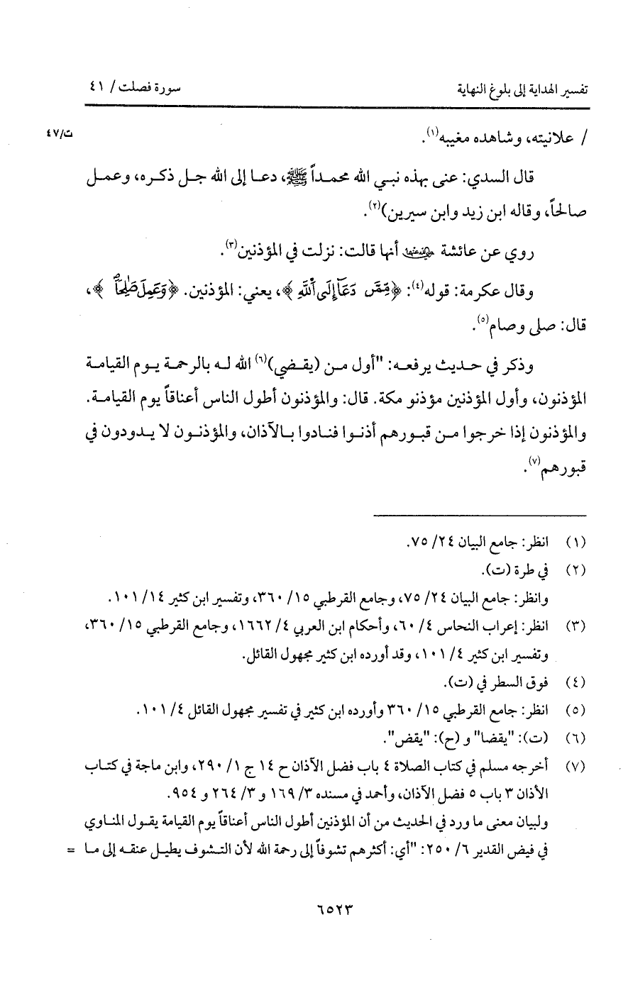 روي عن عائشة Bها أنها قالت: نزلت في المؤذنين.