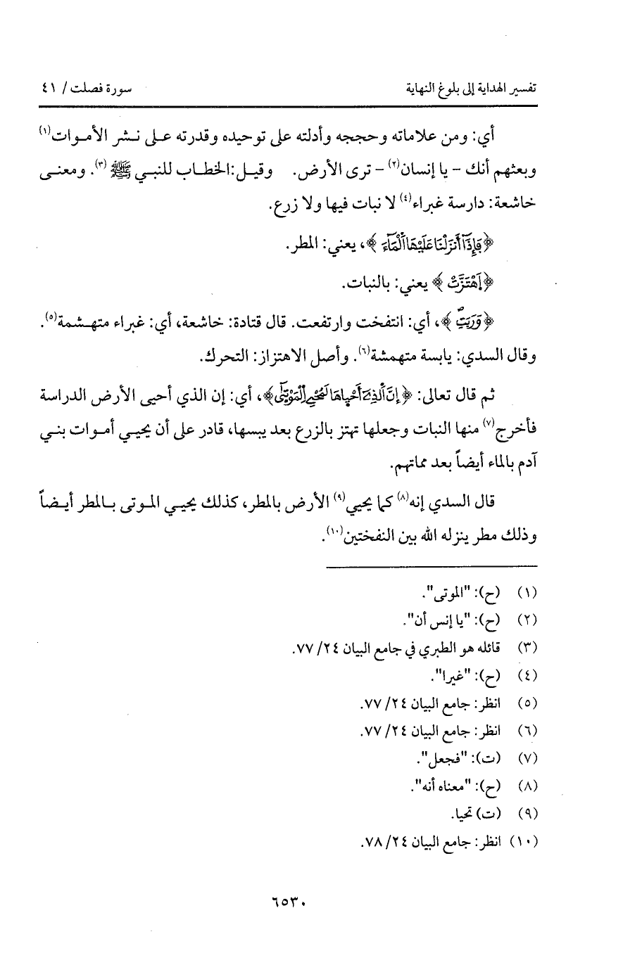 ثم قال تعالى: {إِنَّ الذي أَحْيَاهَا لَمُحْىِ الموتى}، أي: إن الذي أحيى الأرض الدراسة فأخرج منها النبات وجعلها تهتز بالزرع بعد يبسها، قادر على أن يحيي أموات بني آدم بالماء أيضاً بعد مماتهم.