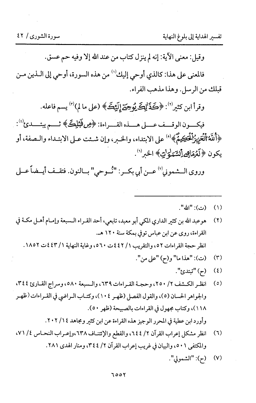 فيكون الوقف على هذه القراءة: {مِن قَبْلِكَ} ثم يبتدئ: {الله العزيز الحكيم} على الابتداء، والخبر، وإن شئت على الابتداء والصفة، أو يكون {لَهُ مَا فِي السماوات} [الشورى: 4] الخبر.