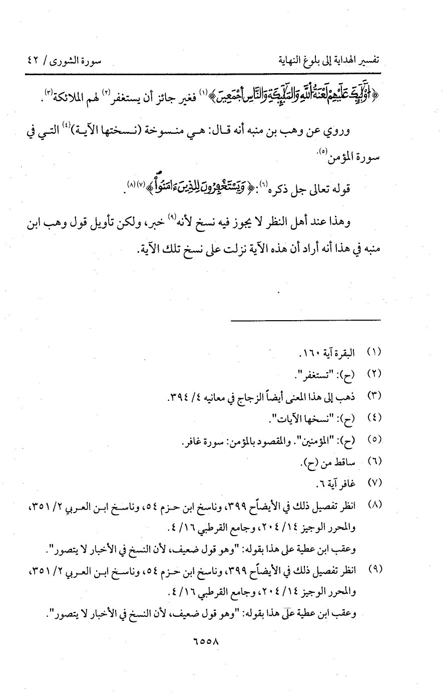وهذا عند أهل النظر لا يجوز فيه نسخ لأنه خبر، ولكن تأويل قول وهب ابن منبه في هذا أنه أراد أن هذه الآية نزلت على نسخ تلك الآية.