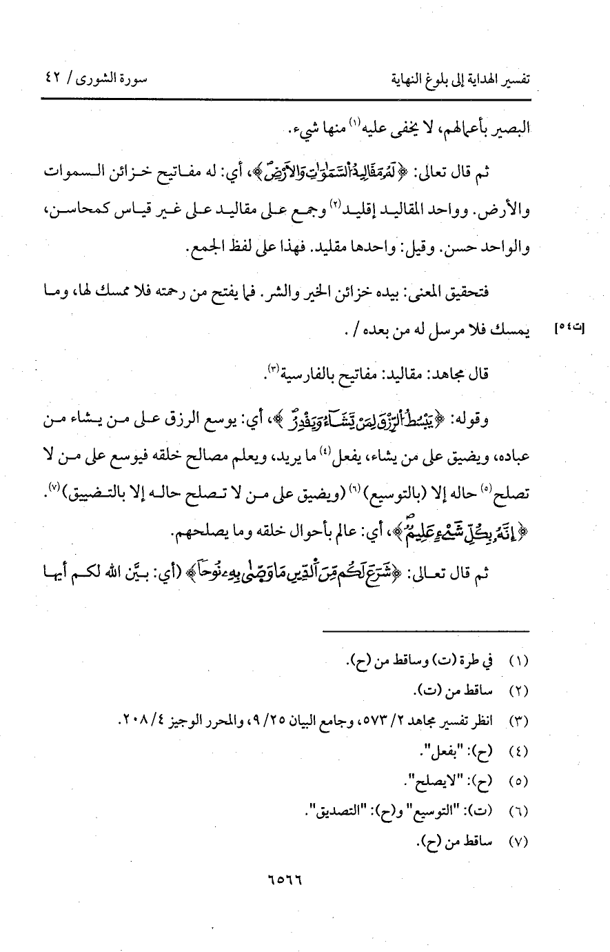 قال مجاهد: مقاليد: مفاتيح بالفارسية.