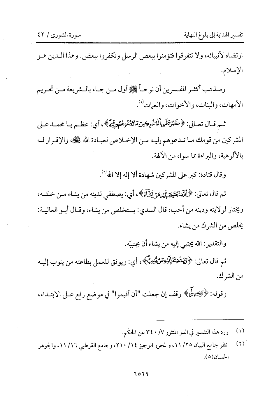 ثم قال تعالى: {الله يجتبي إِلَيْهِ مَن يَشَآءُ}، أي: يصطفي لدينه من يشاء من خلقه، ويختار لولايته ودينه من أحب، قال السدي: يستخلص من يشاء، وقال أبو العالية: يخلص من الشرك من يشاء.