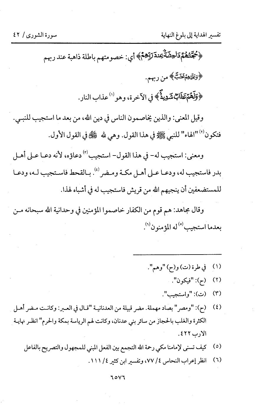 وقيل المعنى: والذين يخاصمون الناس في دين الله، من بعد مت استجيب للنبي. فتكون " الهاء " للنبي A في هذا القول. وهي لله D في القول الأول.