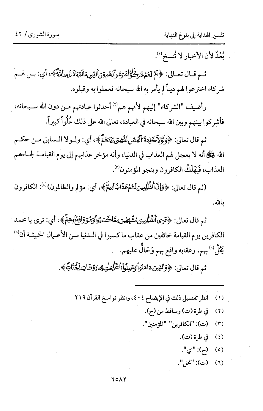 ثم قال تعالى: {وَلَوْلاَ كَلِمَةُ الفصل لَقُضِيَ بَيْنَهُمْ}، أي: ولولا السابق من حكم الله D أنه لا يعجل لهم العذاب في الدنيا، وأنه مؤخر عذابهم إلى يوم القيامة لجاءهم العذاب، فَيَهْلَكُ الكافرون وينجو المؤمنون.