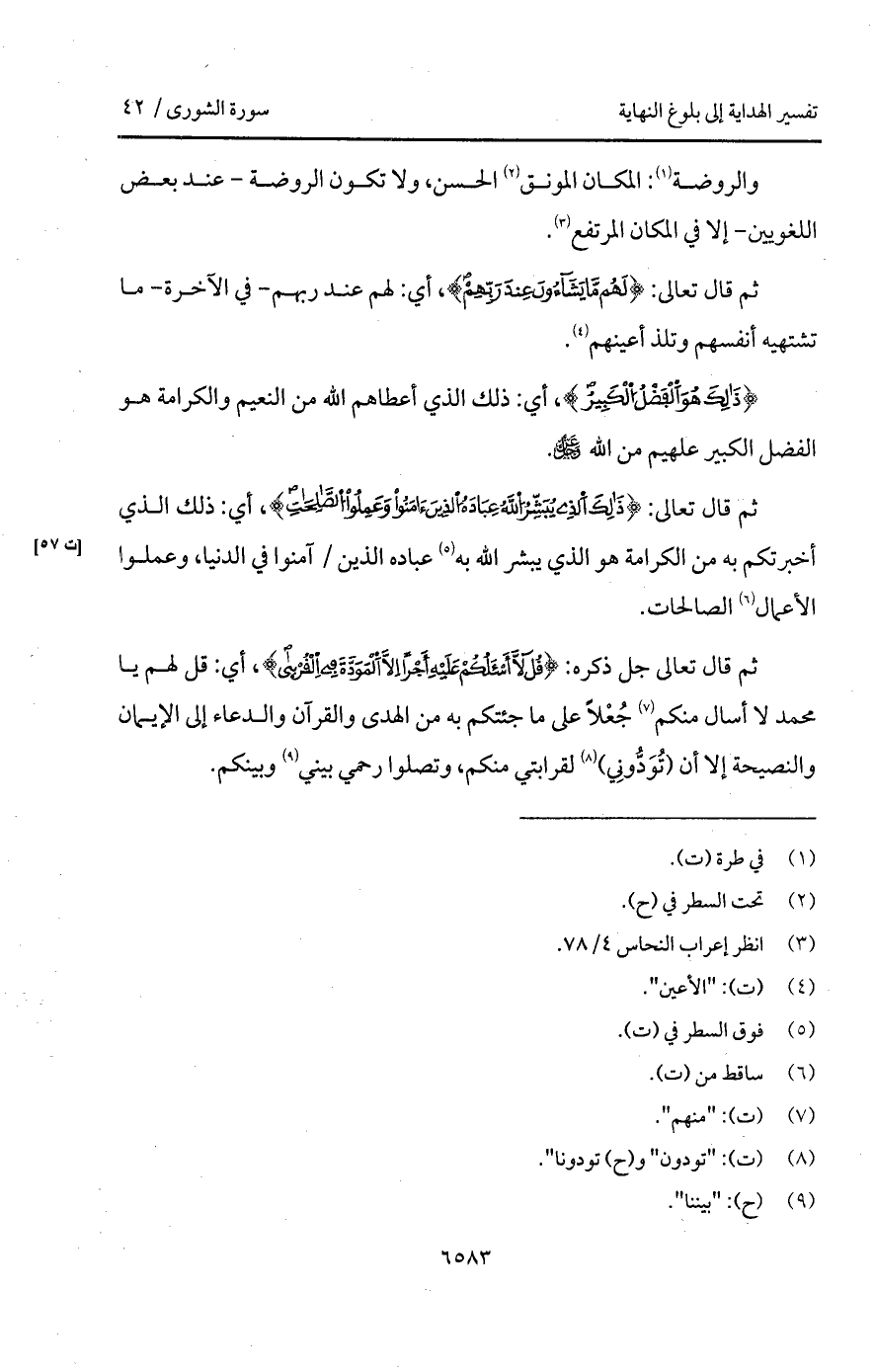 ثم قال تعالى جل ذكره: {قُل لاَّ أَسْأَلُكُمْ عَلَيْهِ أَجْراً إِلاَّ المودة فِي القربى}، أي: قل لهم يا محمد لا أسأل منكم جُعْلاً على ما جئتكم به من الهدى والقرآن والدعاء إلى الإيمان والنصيحة إلا أن (تُوَدُّونِي) لقرابتي منكم، وتصلوا رحمي بيني وبينكم.