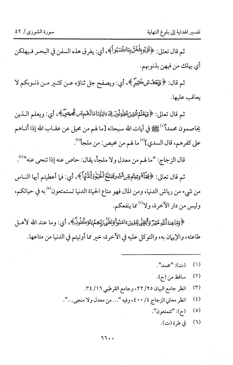 ثم قال تعالى: {وَيَعْلَمَ الذين يُجَادِلُونَ في آيَاتِنَا مَا لَهُمْ مِّن مَّحِيصٍ}، أي: ويعلم الذين يخاصمون محمداً A في آيات الله سبحانه [ما لهم من محيل عن عقاب الله إذا أتاهم على كفرهم، قال السدي] ما لهم من محيص: من ملجأ.