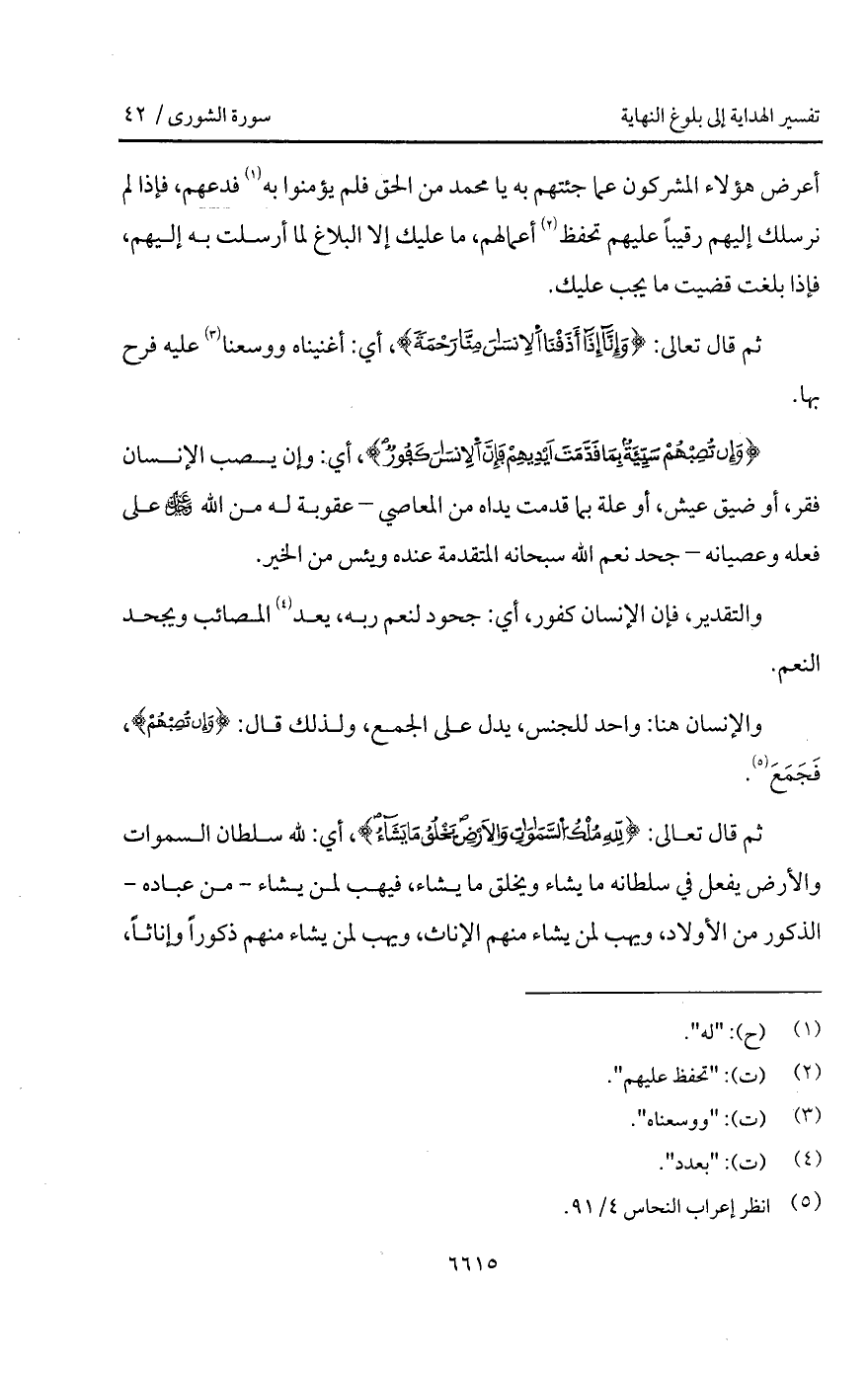 {وَإِن تُصِبْهُمْ سَيِّئَةٌ بِمَا قَدَّمَتْ أَيْدِيهِمْ فَإِنَّ الإنسان كَفُورٌ}، أي: وإن يصب الإنسان فقر، أو ضيق عيش، أو علة بما قدمت يداه من المعاصي - عقوبة له من الله D على فعله وعصيانه - جحد نعم الله سبحانه المتقدمة عنده ويئس من الخير.
