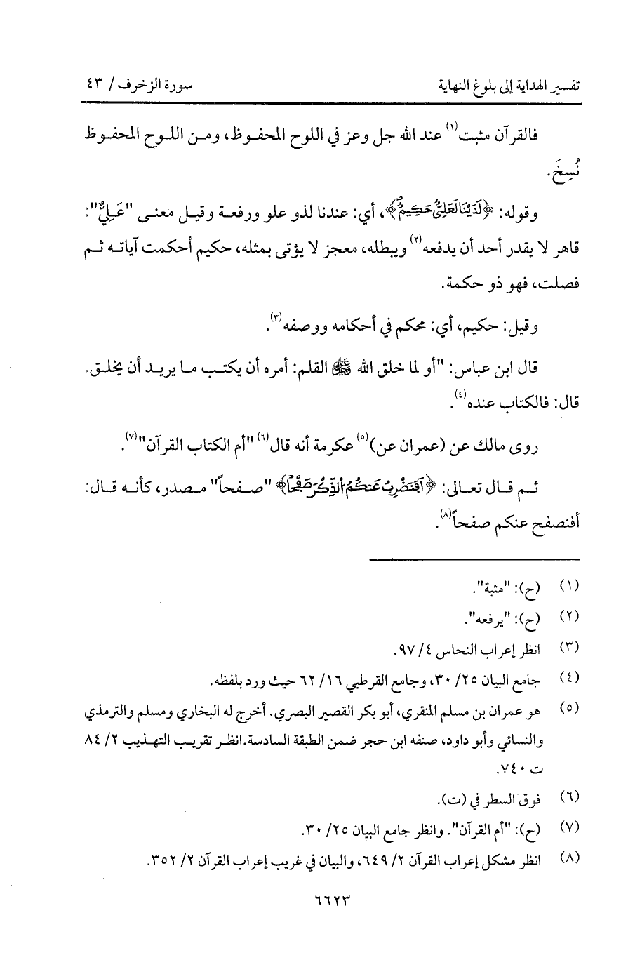 قال ابن عباس: " أو لما خلق الله D القلم: أمره أن يكتب ما يريد أن يخلق. قال: فالكتاب عنده.