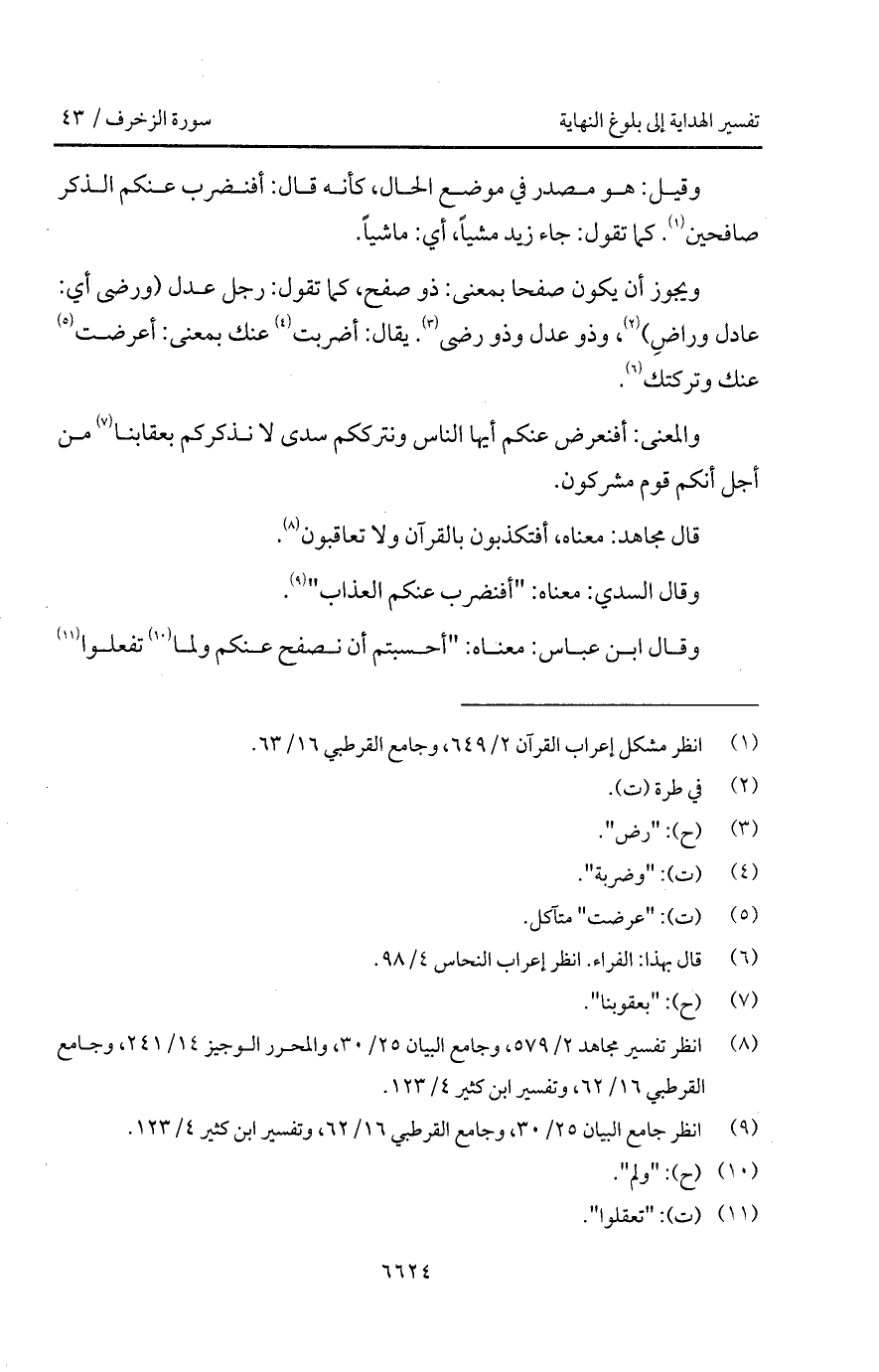 ويجوز أن يكون صفحا بمعنى: ذو صفح، كما تقول: رجل عدل (ورضى أي: عادل وراضٍ)، وذو عدل وذو رضى. يقال: أضربت عنك بمعنى: أعرضت عنك وتركتك.