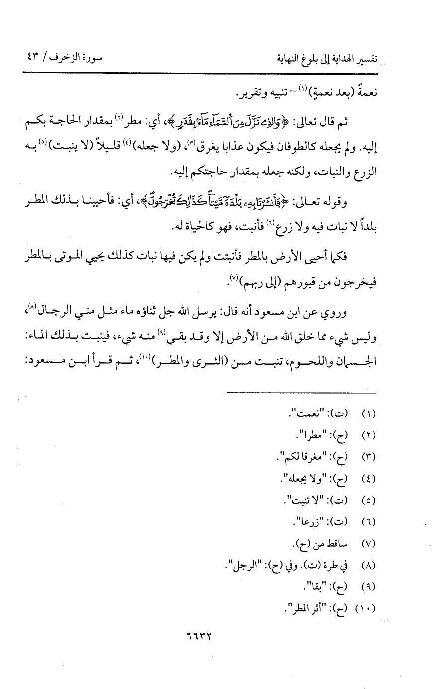 ثم قال تعالى: {والذي نَزَّلَ مِنَ السمآء مَآءً بِقَدَرٍ}، أي: مطر بمقدار الحاجة بكم إليه. ولم يجعله كالطوفان فيكون عذاباً بغرق، (ولا جعله) قليلاً (لا ينبت) به الزرع والنبات، ولكنه جعله بمقدار حاجتكم إليه.