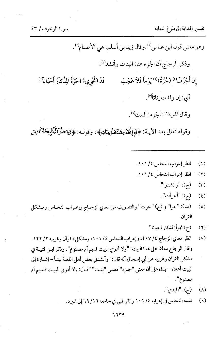إِن أَجْزَتْ (حُرَّةُ) يَوْماً فَلاَ عَجَبَ ... قَدْ (تُجْزِئُ الحُرَّةُ المِذْكَارُ أَحْيَاناً