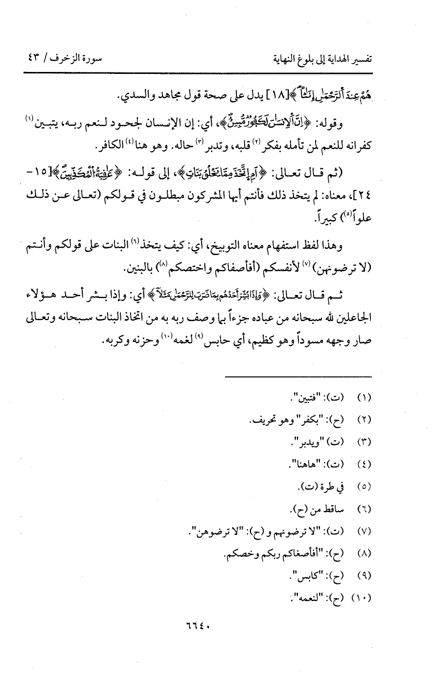 (ثم قال تعالى: {أَمِ اتخذ مِمَّا يَخْلُقُ بَنَاتٍ}، إلى قوله: {عَاقِبَةُ المكذبين}، معناه، لم يتخذ ذلك فأنتم أيها المشركون مبطلون في قولكم (تعالى عن ذلك علواً) كبيراً.