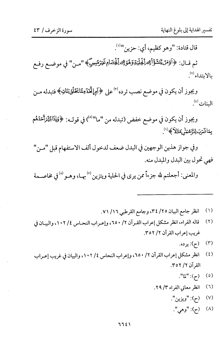 ثم قال: {أَوَمَن يُنَشَّأُ فِي الحلية وَهُوَ فِي الخصام غَيْرُ مُبِينٍ} " من " في موضع رفع بالابتداء.