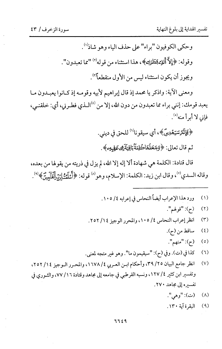 ومعنى الآية: واذكر يا محمد إذ قال إبراهيم لأبيه وقومه إذ كانوا يعبدون ما بعيد قومك: إنني براء مما تعبدون من دون الله، إلا من الذي فطرني، أي: خلقني، فإني لا أبرأ منه.
