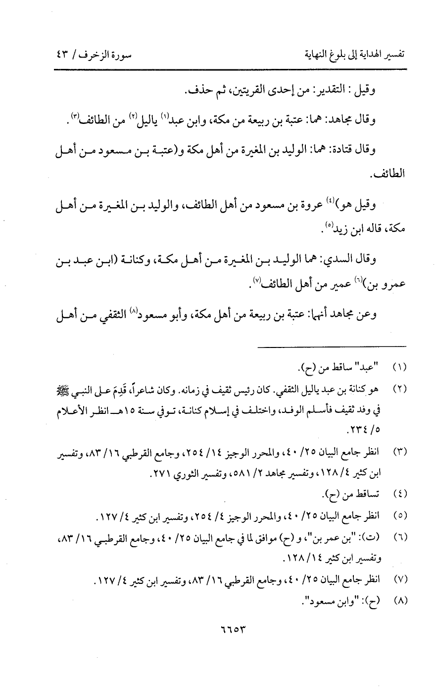 وقال مجاهد: هما: عتبة بن ربيعة من مكة، وابن عبد ياليل من الطائف.