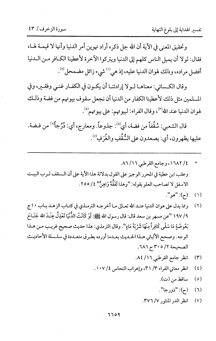 قال الشعبي: سُقُفاً من فضة، أي: جذوعاً. ومعارج، أي: دُرُجاً من فضة. عليها يظهرون، أي: يصعدون على السُّقُفِ والغُرَفِ.
