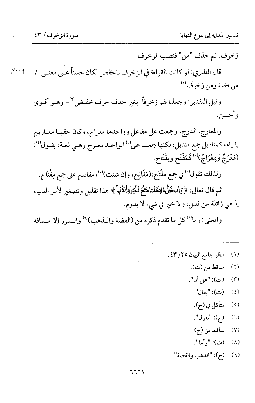 ولذلك تقول في جمع مَفْتَح: (مَفَاتِح، وإن شئت)، مفاتيح على جمع مَفْتَاح.