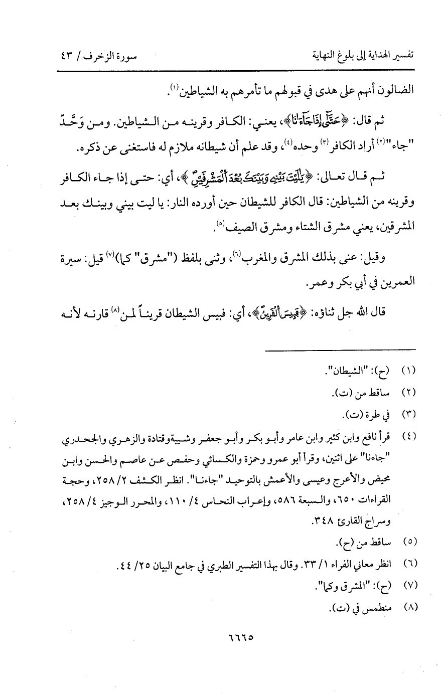 ثم قال: {حتى إِذَا جَآءَنَا}، يعني: الكافر وقرينه من الشياطين. ومن وَحَّدّ " جاء " أراد الكافر وحده، وقد علم أن شيطانه ملازم له فاستغنى عن ذكره.