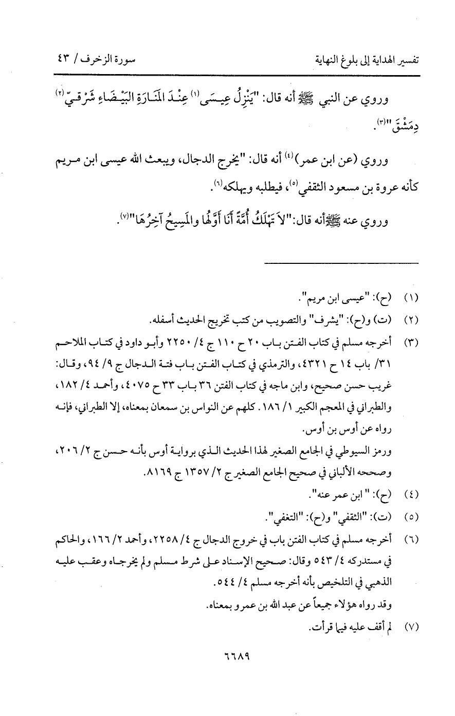 وروي (عن ابن عمر) أنه قال: " يخرج الدجال، ويبعث الله عيسى ابن مريم كأنه عروة بن مسعود الثقفي، فيطلبه ويهلكه.