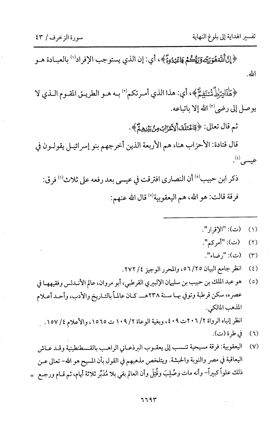 فكر ابن حبيب أن النصارى افترقت في عيسى بعد رفعه على ثلاث فرق: