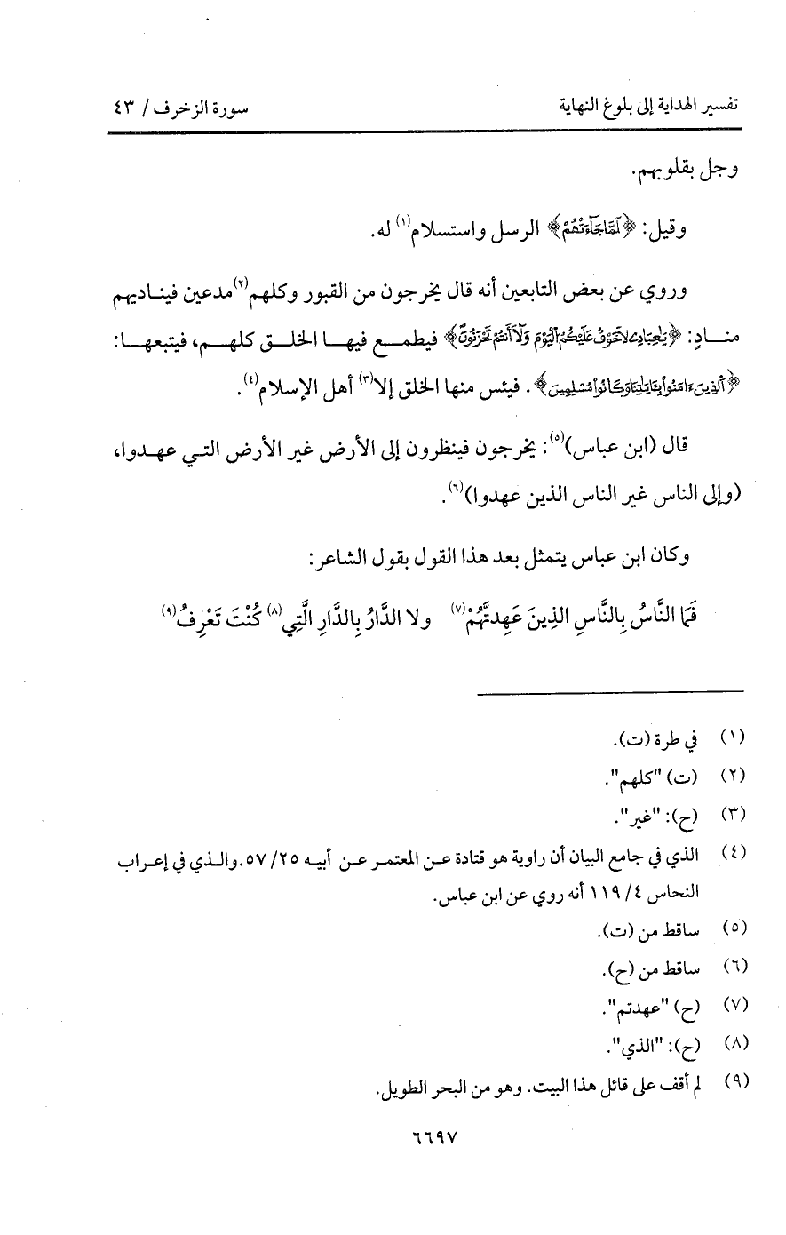 وكان ابن عباس يتمثل بعد هذا القول بقول الشاعر: