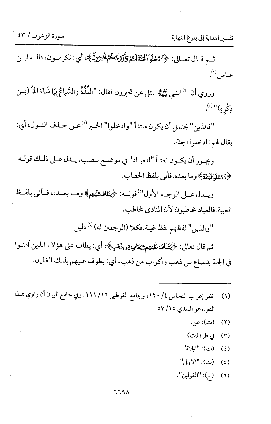 ويدل على الوجه الأول قوله: {يُطَافُ عَلَيْهِمْ} وما بعده، فأتى بلفظ الغيبة. فالعباد مخاطبون لأن المنادى مخاطب.