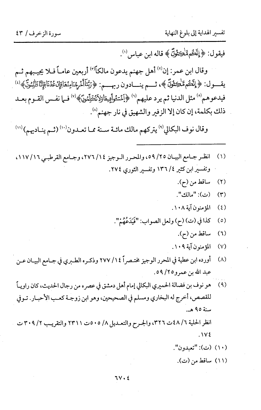 وقال نوف البكالي يتركهم مالك مائة سنة مما تعدون (ثم يناديهم)