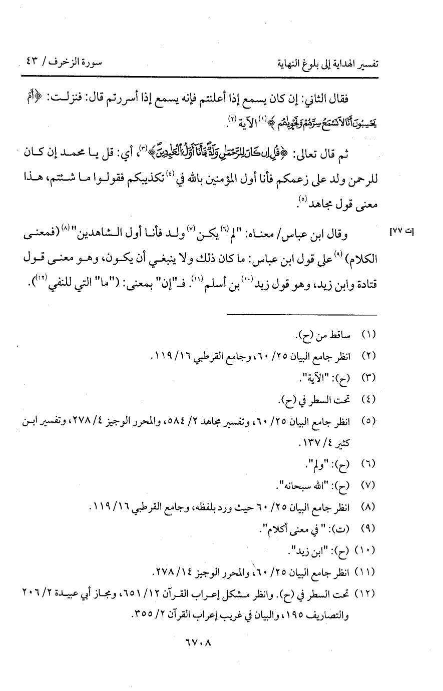 وقال ابن عباس / معناه: لم يكن ولد فأنا أول الشاهدين " (فمعنى الكلام) على قول ابن عباس: ما كان ذلك ولا ينبغي أن يكون، وهو معنى قول قتادة وابن زيد، وهو قول زيد بن أسلم. ف " إن " معنى: (" ما " التي للنفي).