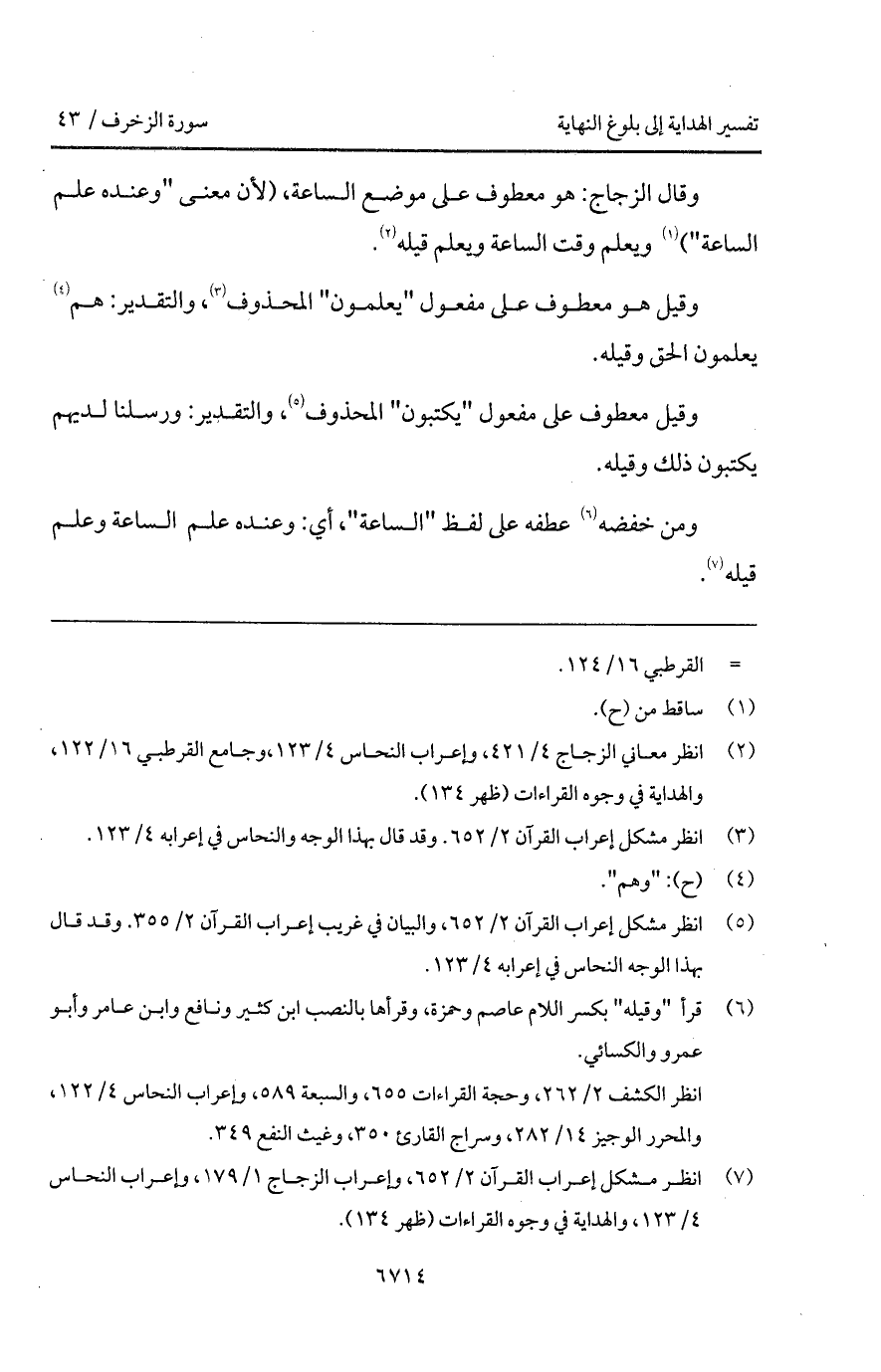 ومن خفضه عطفه على لفظ " الساعة "، أي: وعنده علم الساعة وعلم قيله.