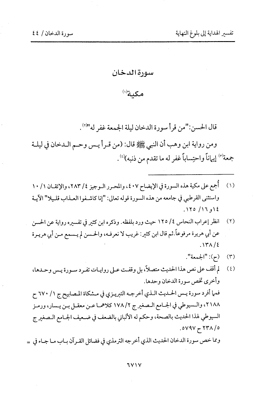 قال الحسن: "من قرأ سورة الدخان ليلة الجمعة غفر له".