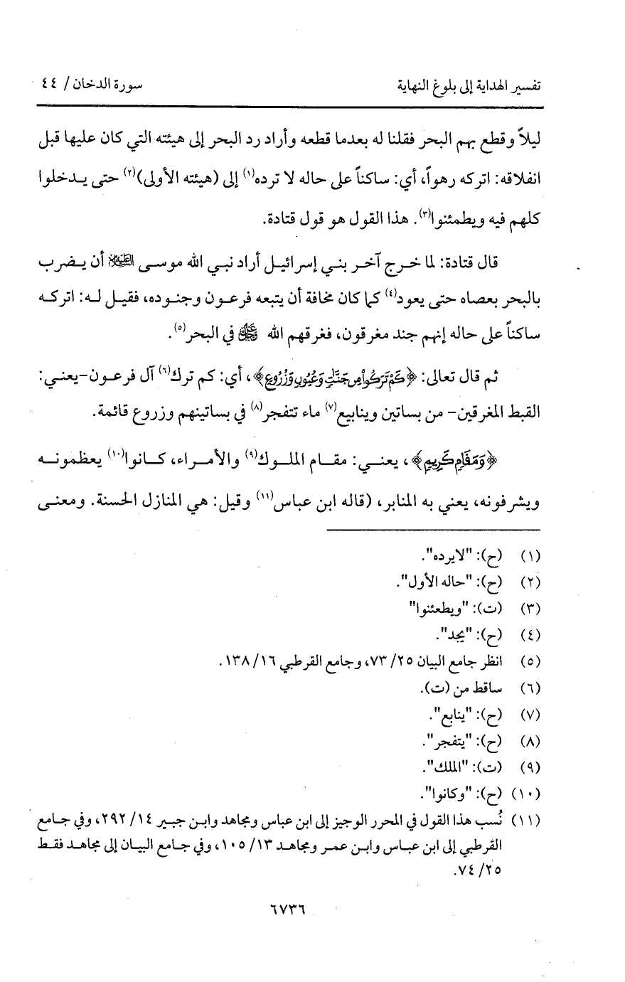 {وَمَقَامٍ كَرِيمٍ}، يعني: مقام الملوك والأمراء، كانوا يعظمونه ويشرفونه، يعني به المنابر، (قاله ابن عباس وقيل: هي المنازل الحسنة. ومعنى
