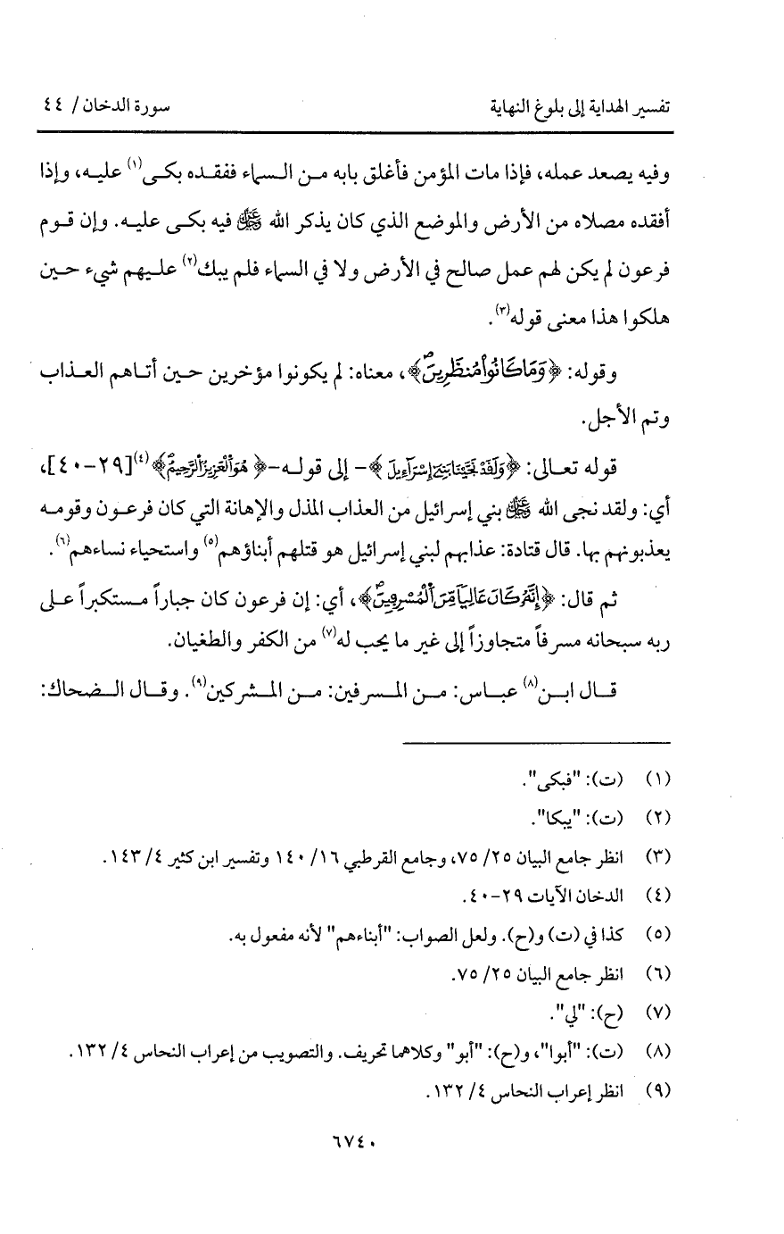 وفيه يصعد عمله، فإذا مات المؤمن فأغلق بابه من السماء ففقده بكى عليه، وإذا أفقده مصلاه من الأرض والموضع الذي كان يذكر الله D فيه بكى عليه. وإن قوم فرعون لم يكن لهم عمل صالح في الأرض ولا في السماء فلم يبك عليهم شيء حين هلكوا هذا معنى قوله.