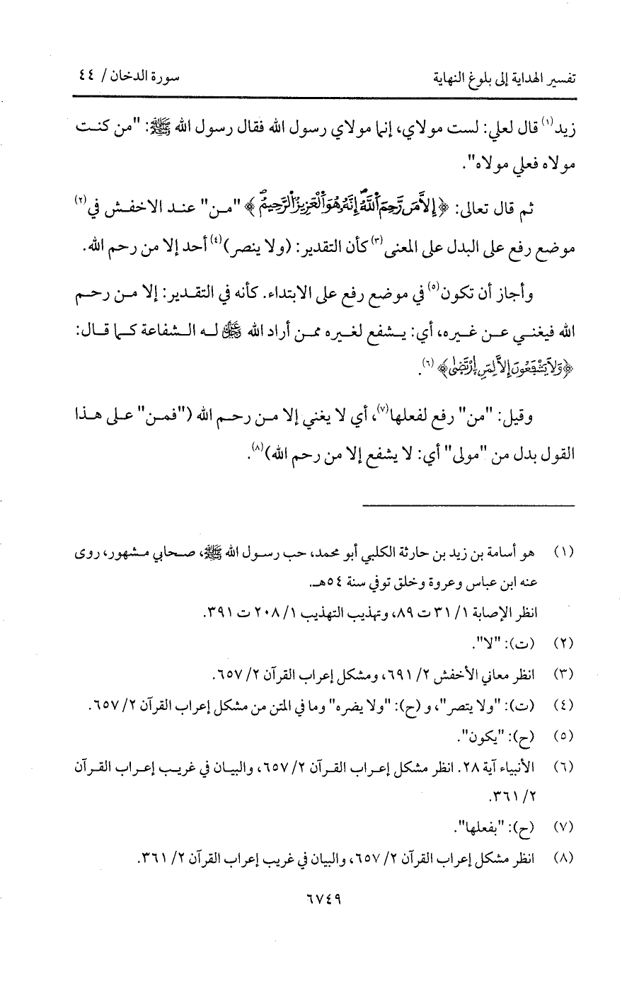 وأجاز أن تكون في موضع رفع على الابتداء. كأنه في التقدير: إلا من رحم الله فيغني عن غيره، أي: يشفع لغيره ممن أراد الله D له الشفاعة كما قال: {وَلاَ يَشْفَعُونَ إِلاَّ لِمَنِ ارتضى} [الأنبياء: 28].