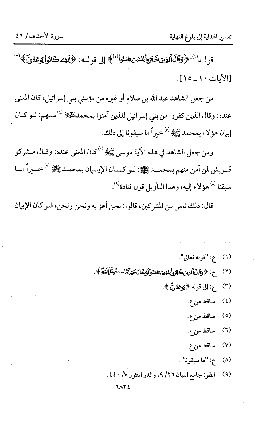 من جعل الشاهد عبد الله بن سلام أو غيره من مؤمني بني إسرائيل، كان المعنى عنده: وقال الذين كفروا من بني إسرائيل للذين آمنوا بمحمد A كان المعنى عنده: وقال مشركو قريش لمن آمن منهم بمحمد A: لو كان الإيمان بمحمد A خيراً ما سبقنا هؤلاء إليه، وهذا التأويل قول قتادة.