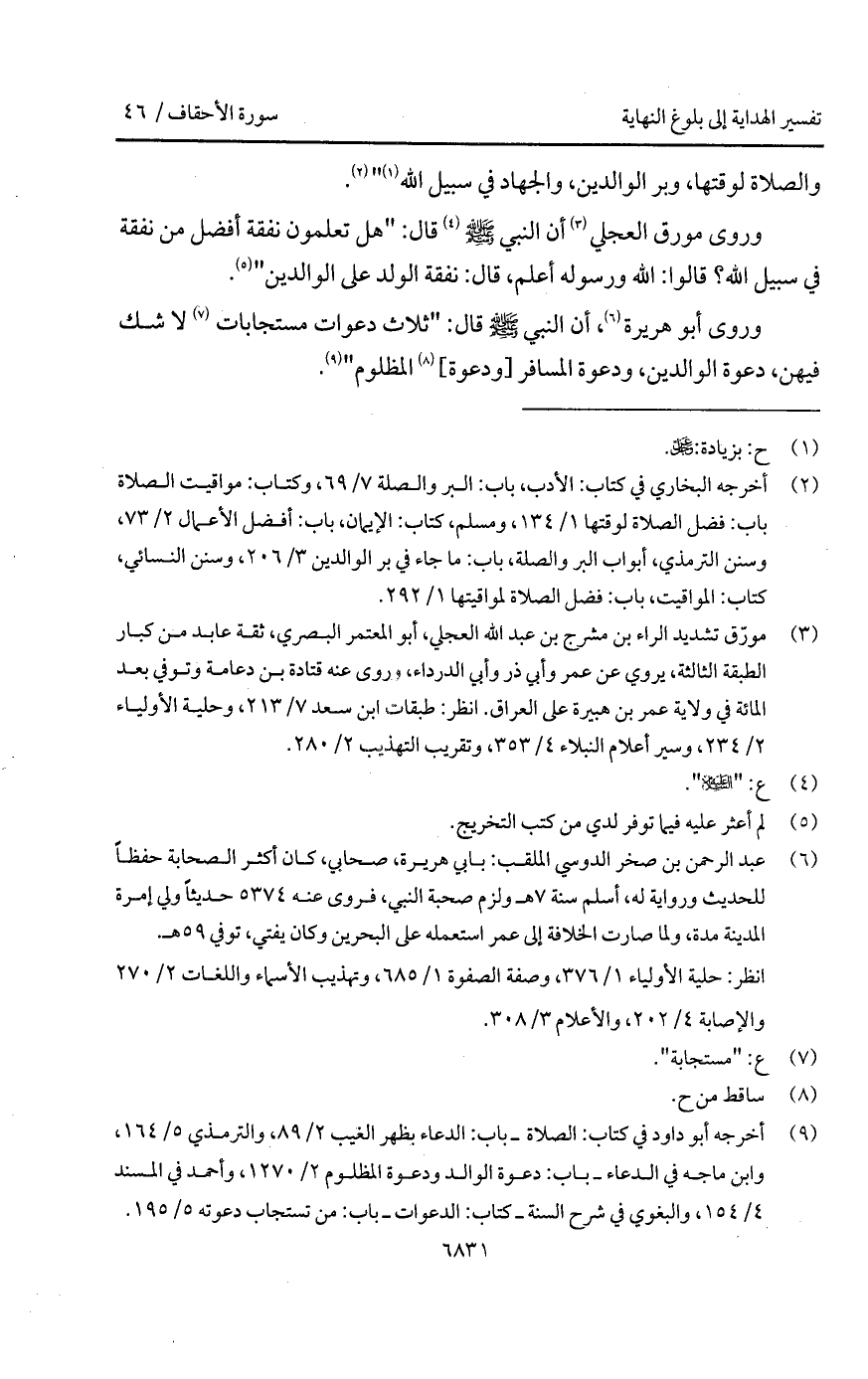 وروى مورق العجلي أن النبي A قال: " هل تعلمون نفقة أفضل من نفقة في سبيل الله؟ قالوا: الله ورسوله أعلم، قال: نفقة الولد على الوالدين ".