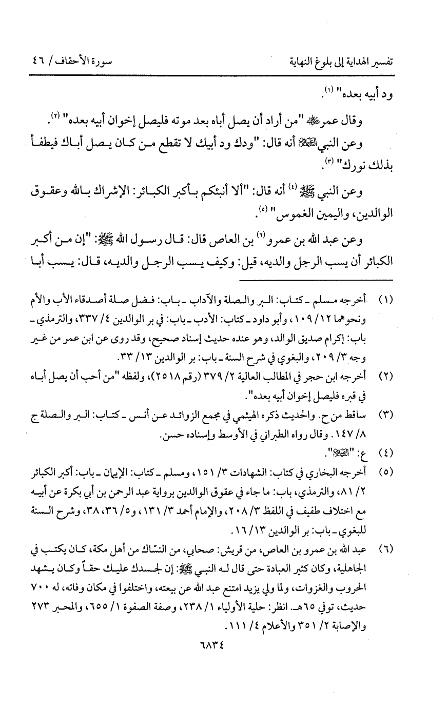 وعن عبد الله بن عمرو بن العاص قال: قال رسول الله A: " إن من أكبر الكبائر أن يسب الرجل والديه، قيل: وكيف يسب الرجل والديه، قال: يسب أبا