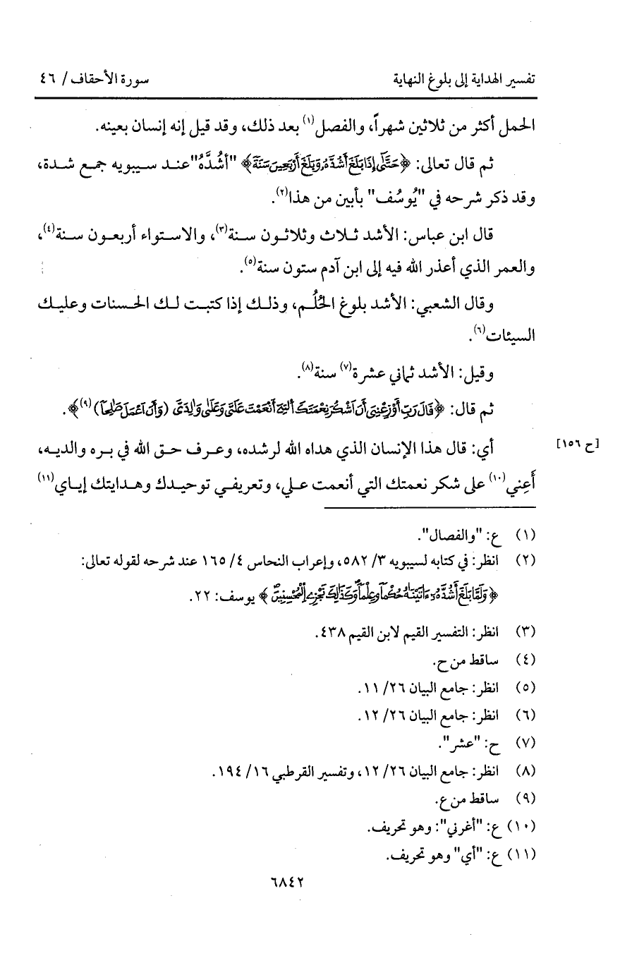 ثم قال تعالى: {حتى إِذَا بَلَغَ أَشُدَّهُ وَبَلَغَ أَرْبَعِينَ سَنَةً} " أشُدَّهُ " عند سيبويه جمع شدة، وقد ذكر شرحه في " يُوسُف " بأبين من هذا.